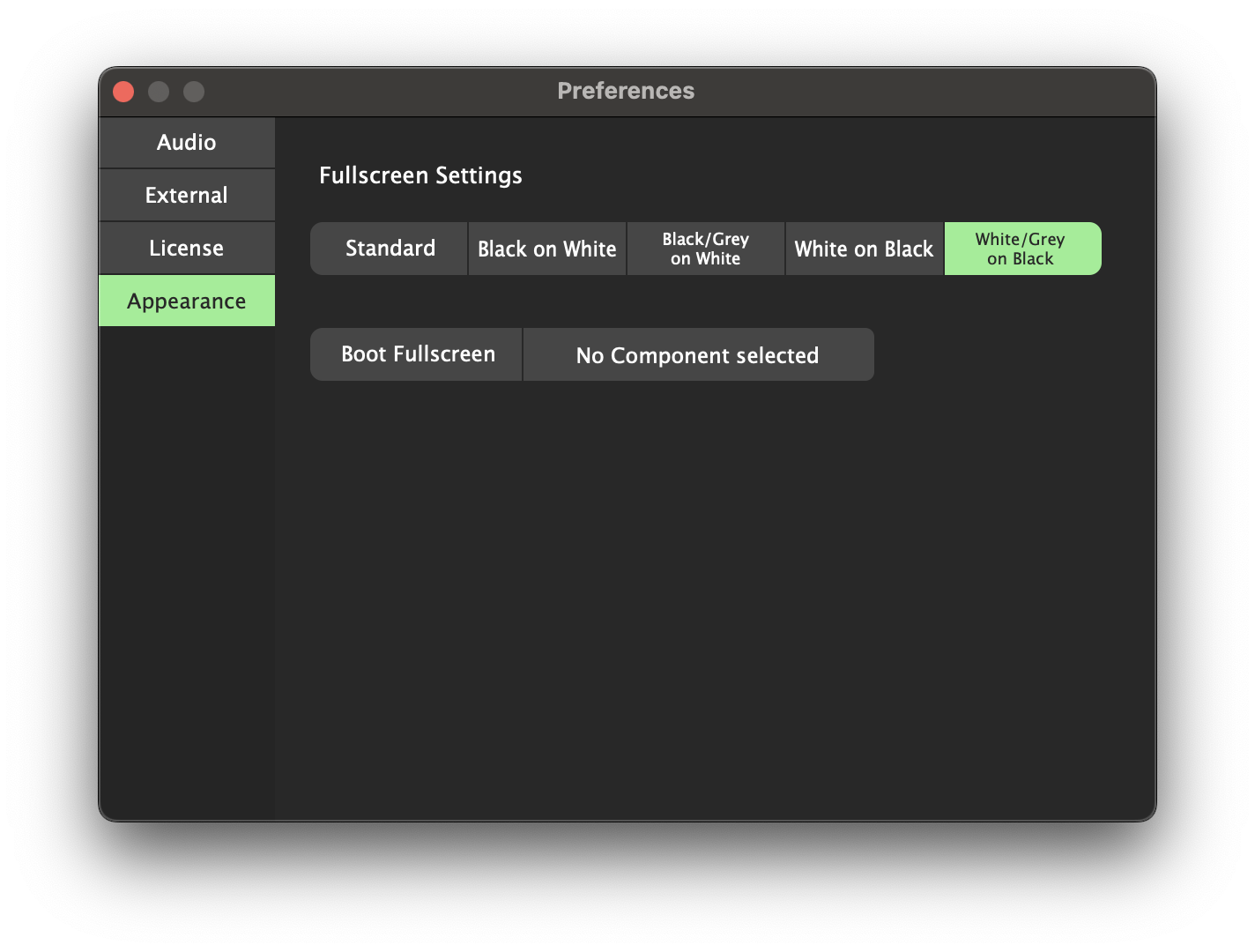 We click [Options] -> [Preferences] -> [Appearance] again, and enable the [Boot Fullscreen] button and use the selector next to it to select the component to be displayed in fullscreen at boot.