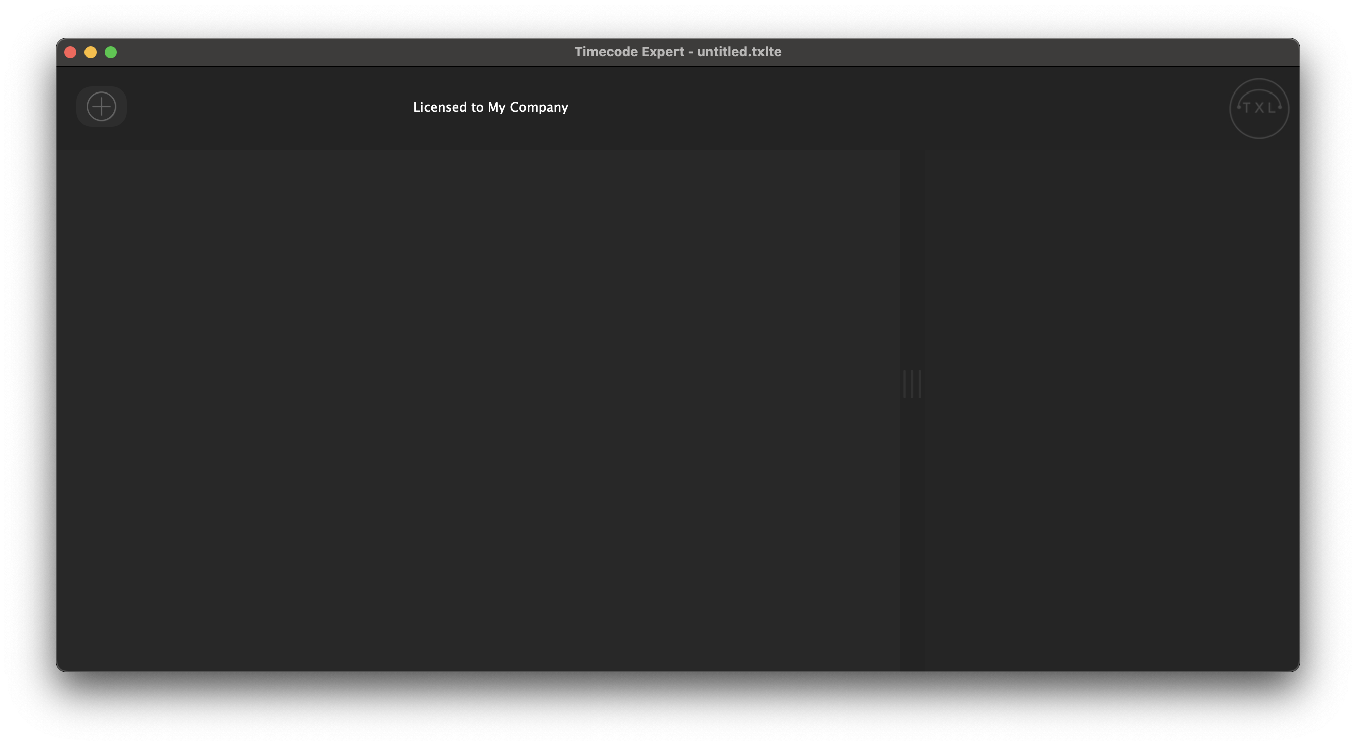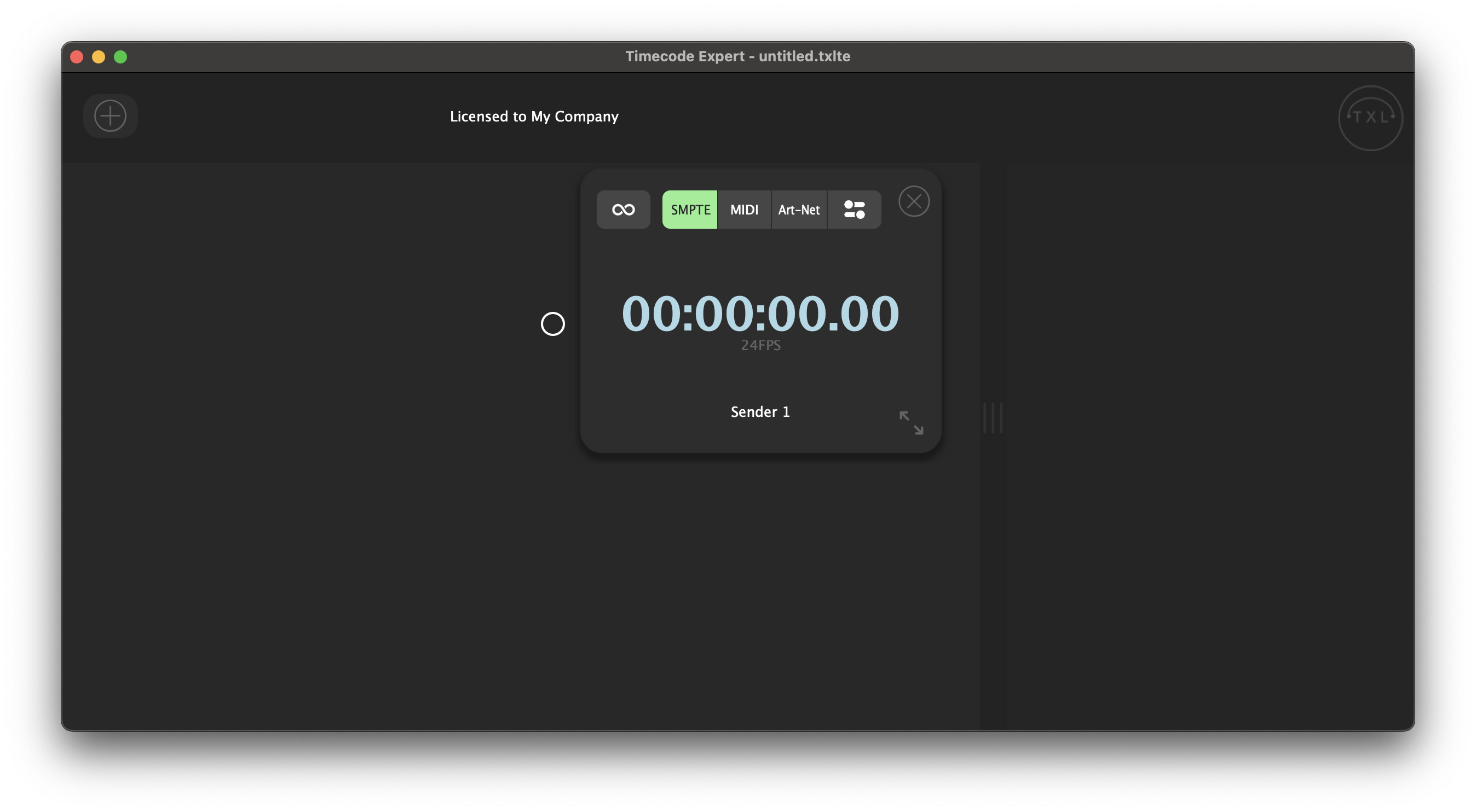 We start with an empty project. To start Sending SMPTE LTC, you click on the add component '+' button on the top left of the start screen.